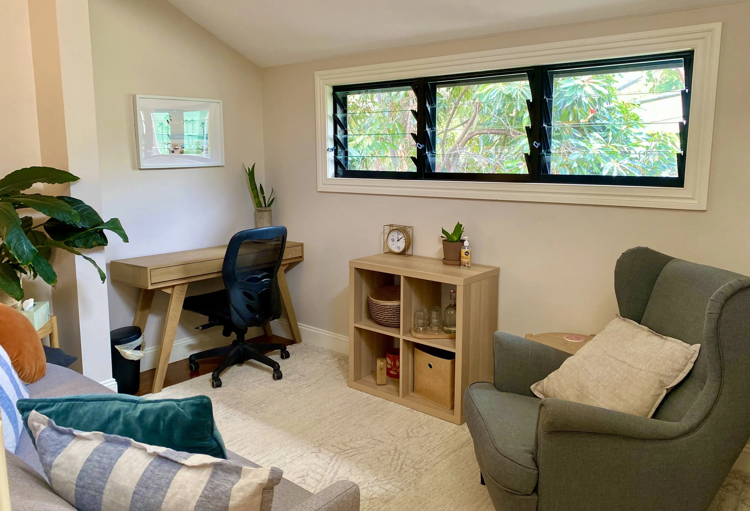 I hope you feel at home in our space. The rooms are thoughtfully created to be inviting, calm, and sensory-friendly, reflecting our commitment to inclusivity and genuine care. Every detail is designed to help you feel safe and at ease, because a sense of comfort is essential for a meaningful therapeutic experience.